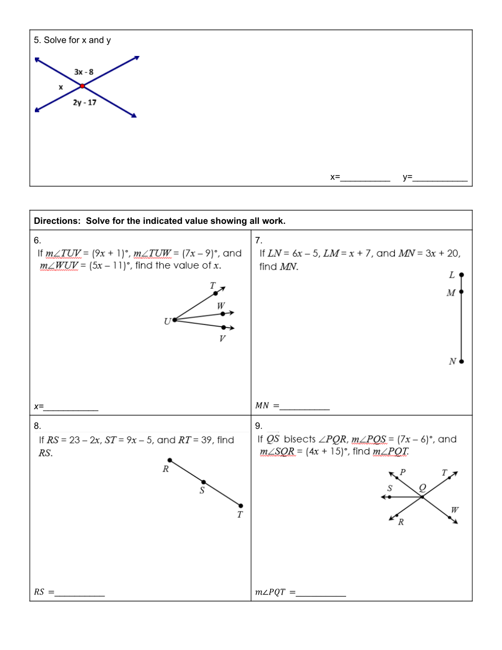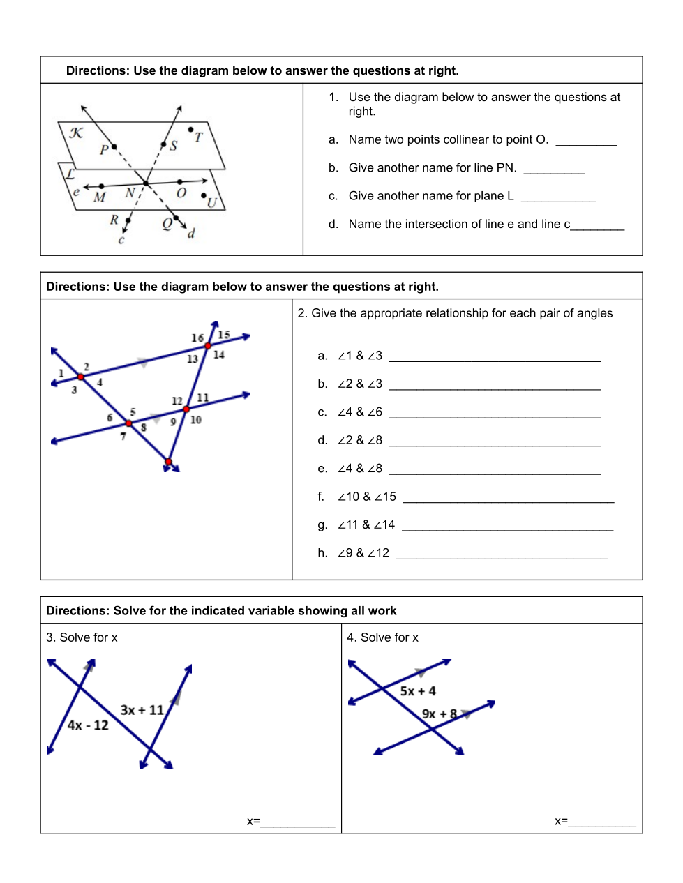 Give the appropriate relationship for t pair of the angles.