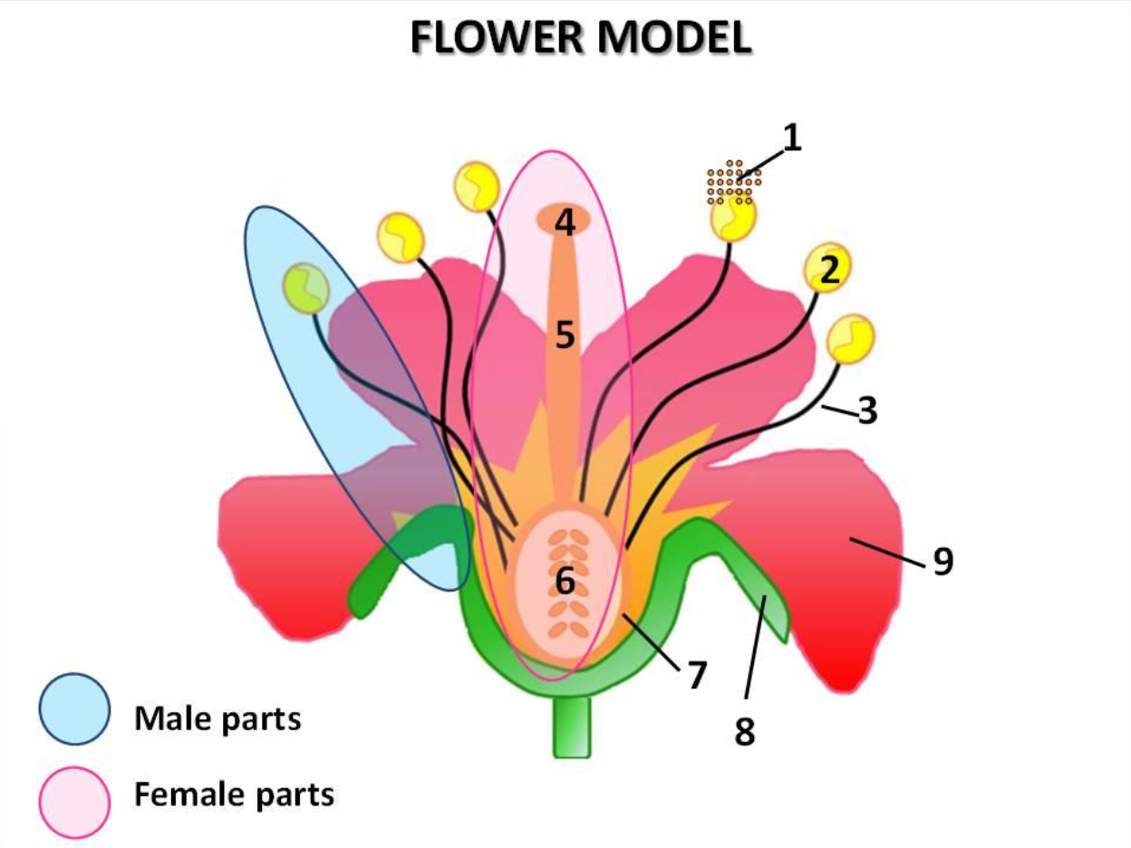 The petal of a flower, indicated by #9, attracts pollinators.