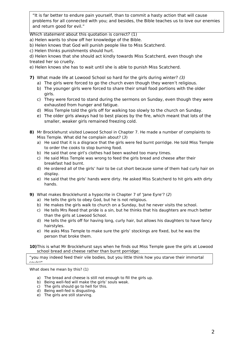 Jane Eyre Quiz 4 Traditional