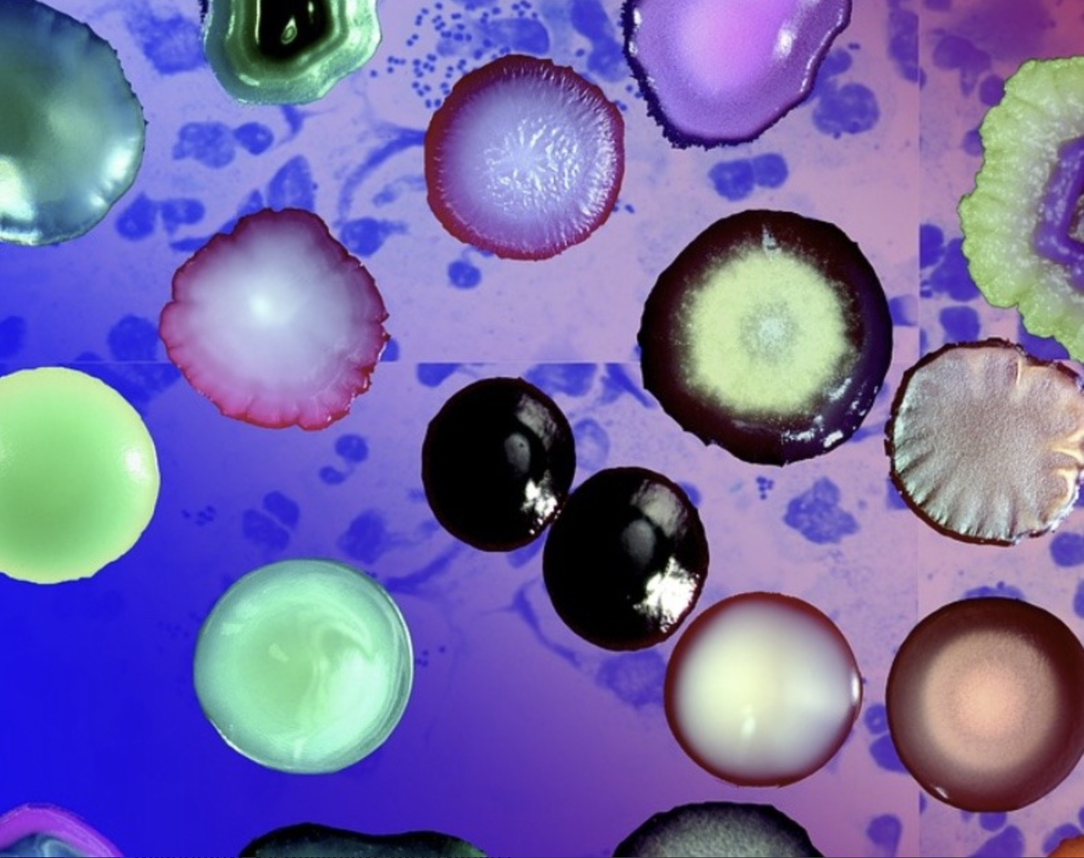 The bacterial colonies vary in color. Colors include green, grey, black, and blue.__________