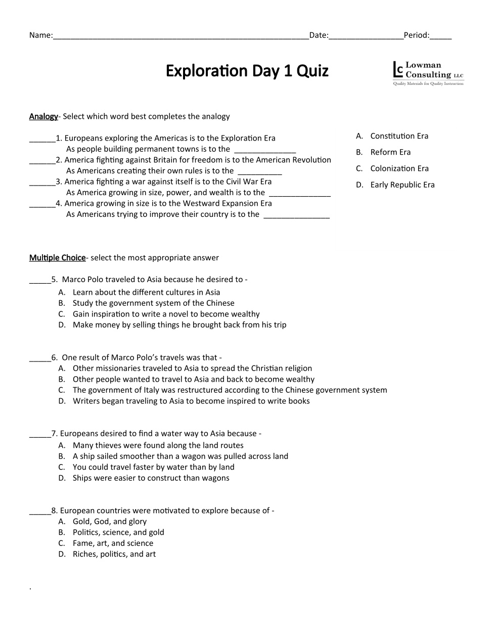 Exploration Day 1 Quiz