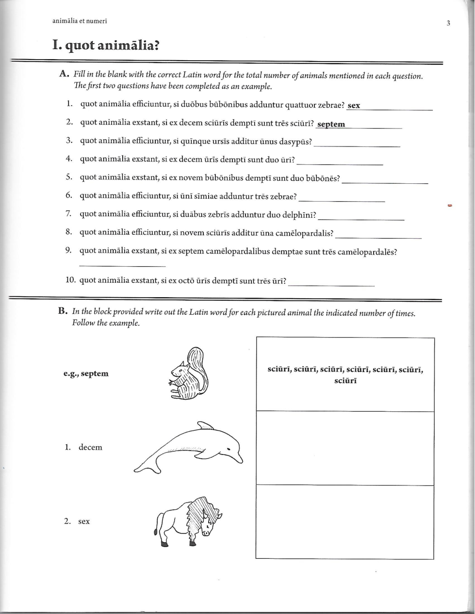 A Latin Picture Dictionary Chapter 1 Part I: animalia et numeri