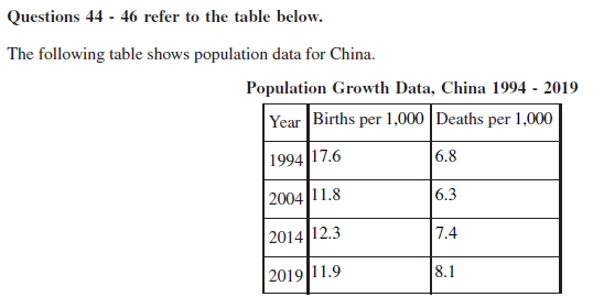 Which of the following calculation methods would determine the percent change in the crude birth rate from 1994 to 2019 ?