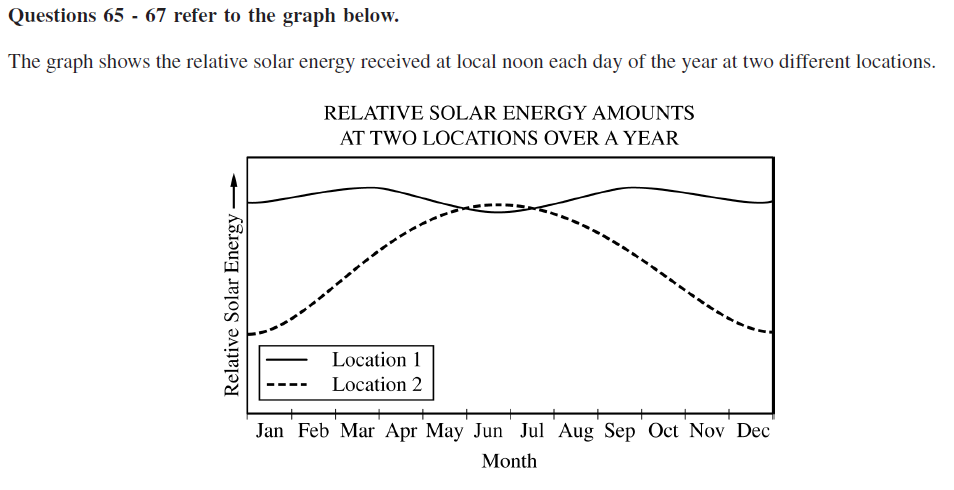 Based on the graph, which of the following can be concluded about the latitudes of the two locations?