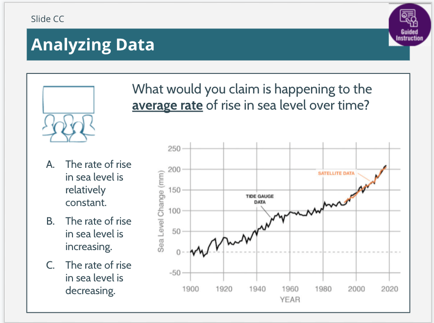 In general, what would you claim is happening to the average rate of rise in sea level over time?
