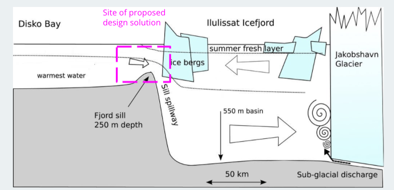 Looking back at our design solution above. The glacier and icefjord is located above and next to deep ocean water.