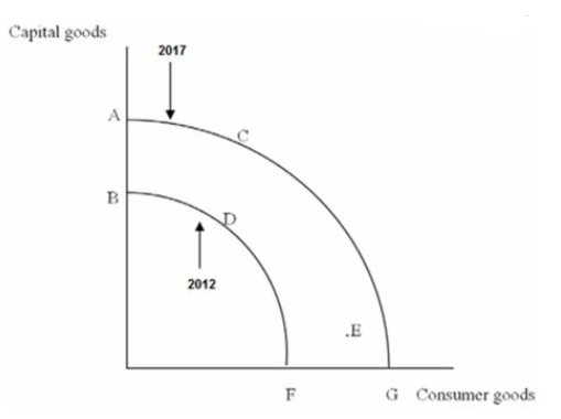 In 2017, starting at point C...Factories become abandoned due to extreme government regulations. Production will move towards...