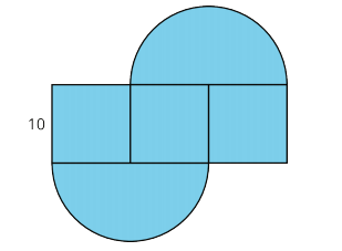 The shape is composed of three squares and two semicircles. Select all the expressions that correctly calculate the perimeter of the shape.