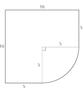 This figure is made from a part of a square and a part of a circle. What is the area of this figure, to the nearest square unit?