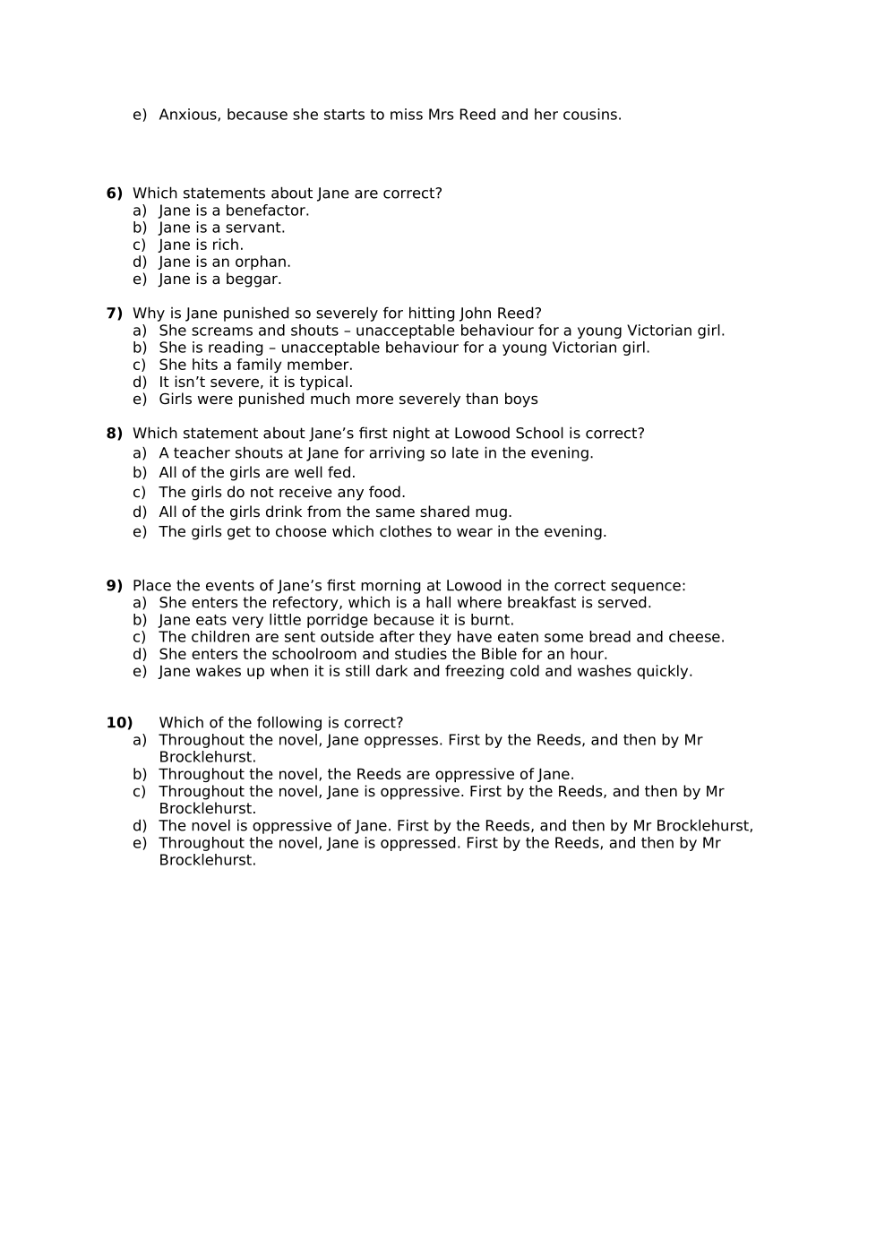 Jane Eyre Quiz 3 Foundation