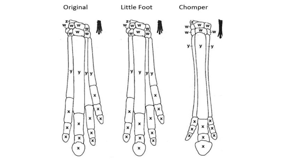 The original dinosaur has a short neck, flat teeth, and short hind legs. How is Little Foot different from the original dinosaur?