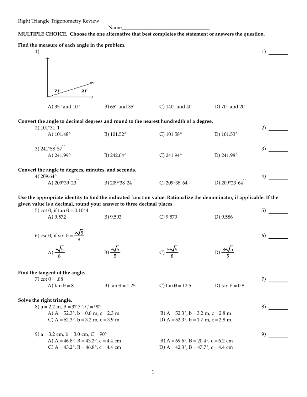 8-9: Solve the right triangle