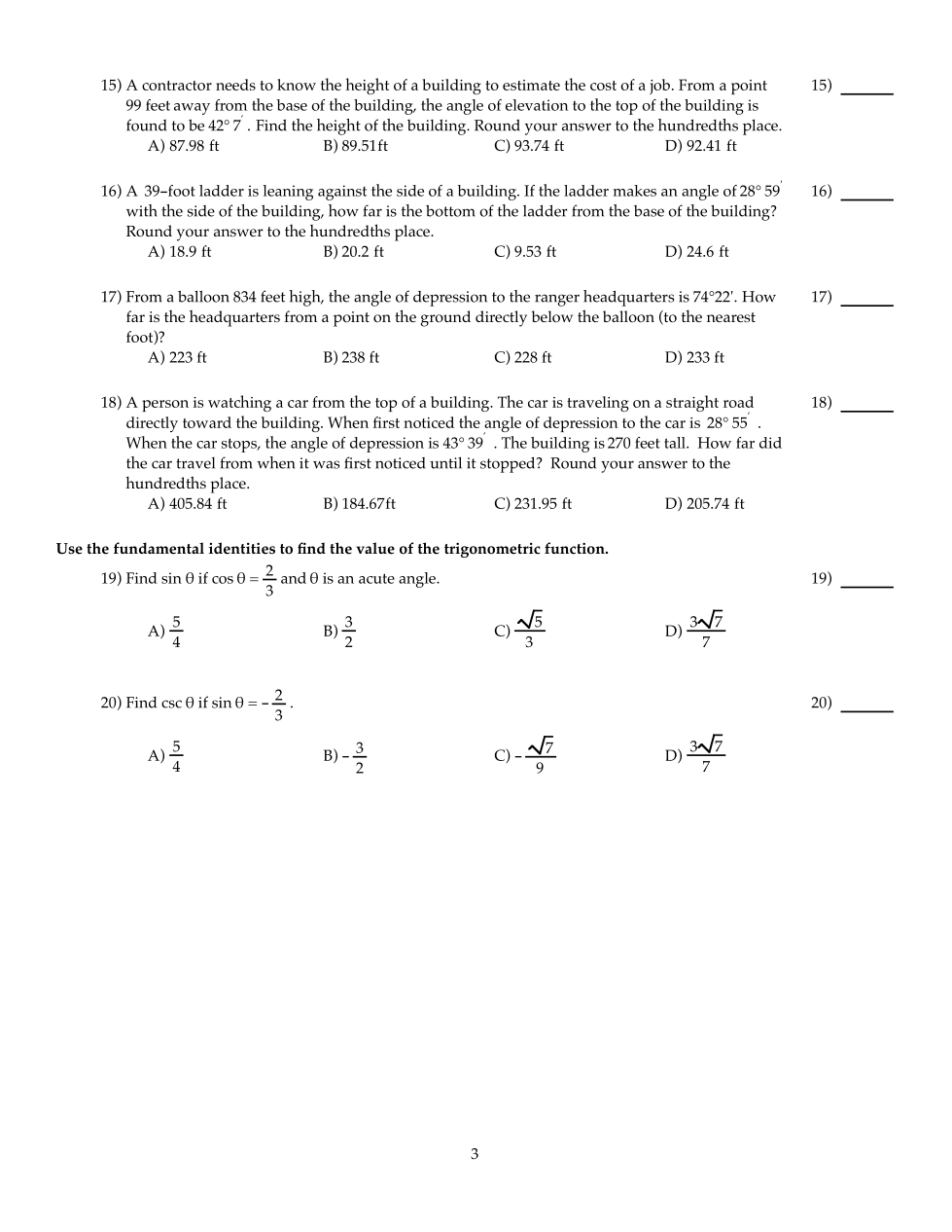 19-20: Use identitites to find the value of the trigonometric function