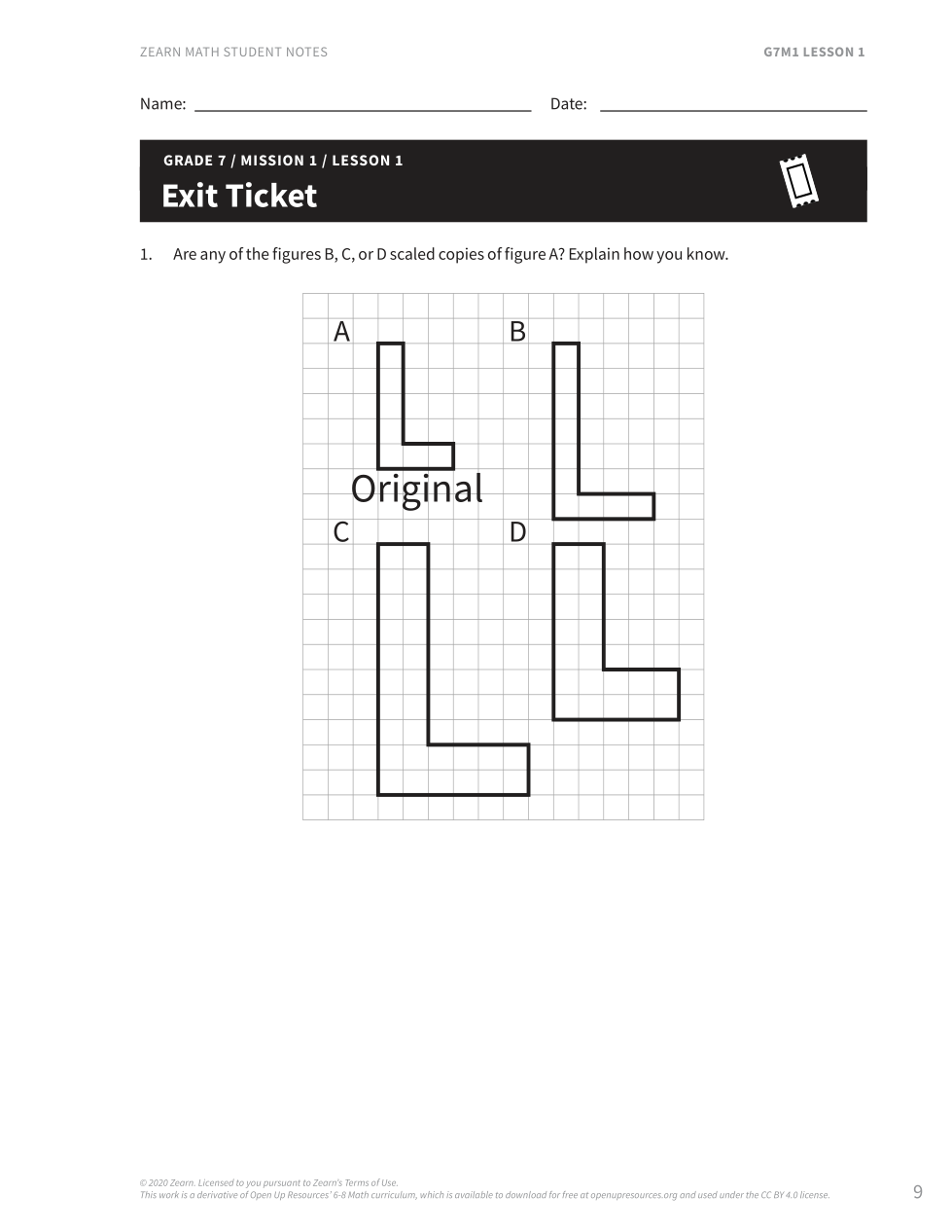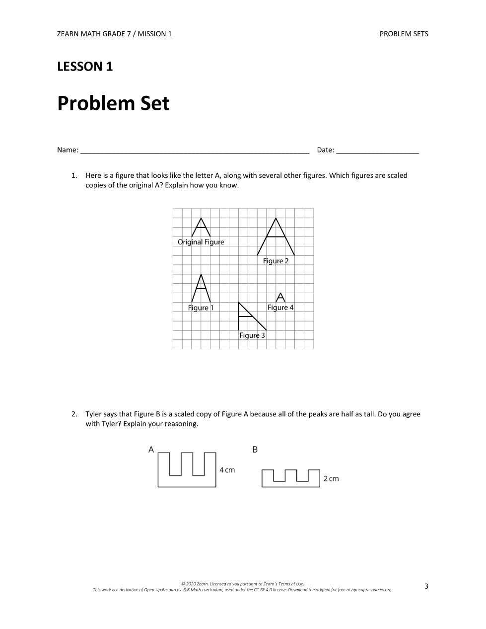 Here is a figure that looks like the letter A, along with several other figures. Which figures are scaled copies of the original A? Explain how you know in the space provided below.