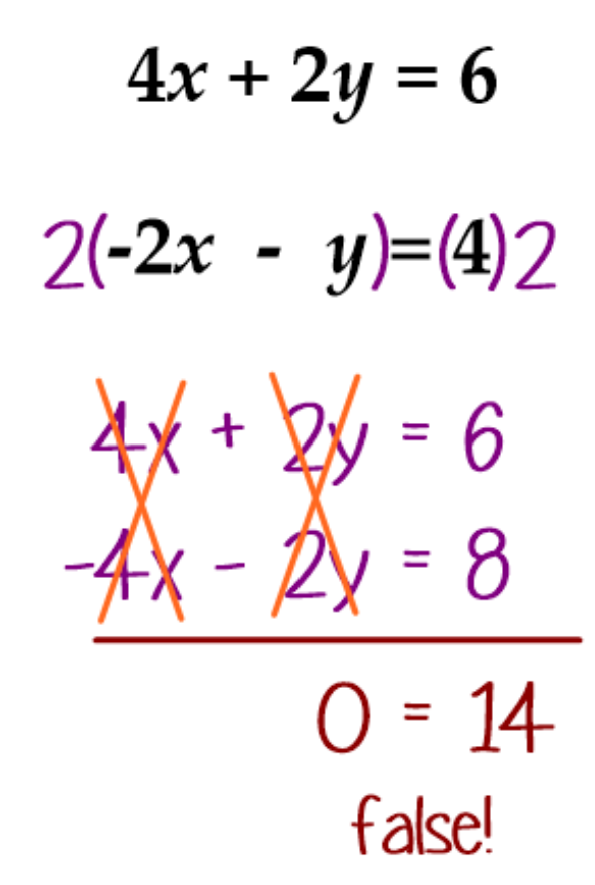If you solve a system and BOTH variables cancel out, it's either no solution or infinite solutions.