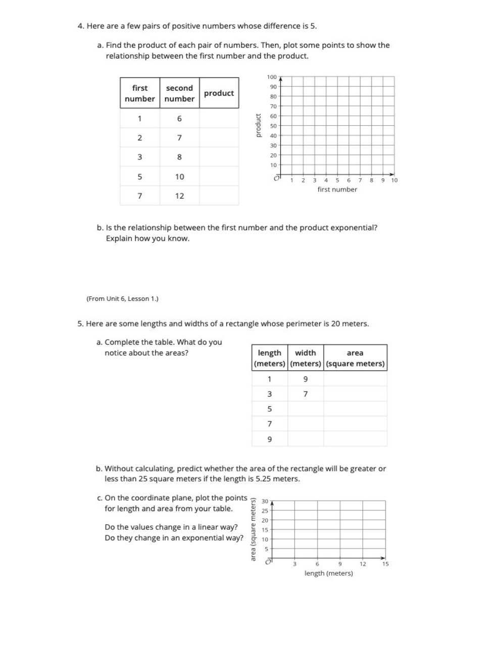 Without calculating, predict whether the area of the rectangle be greater or less than 25 square meters if the length is 5.25 meters?