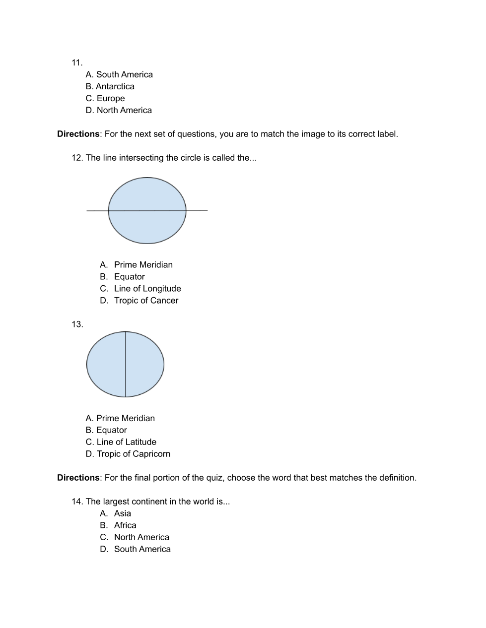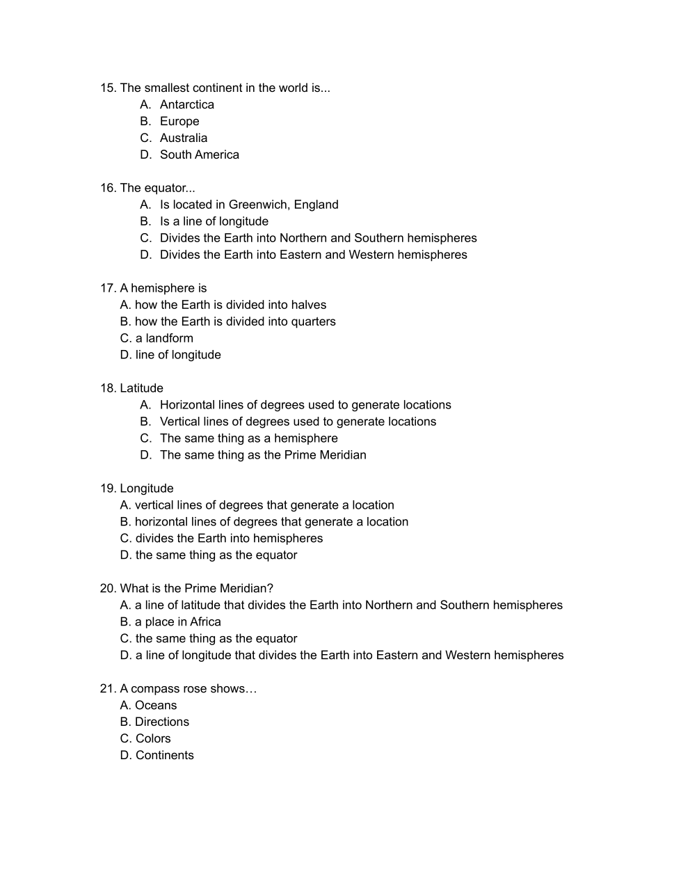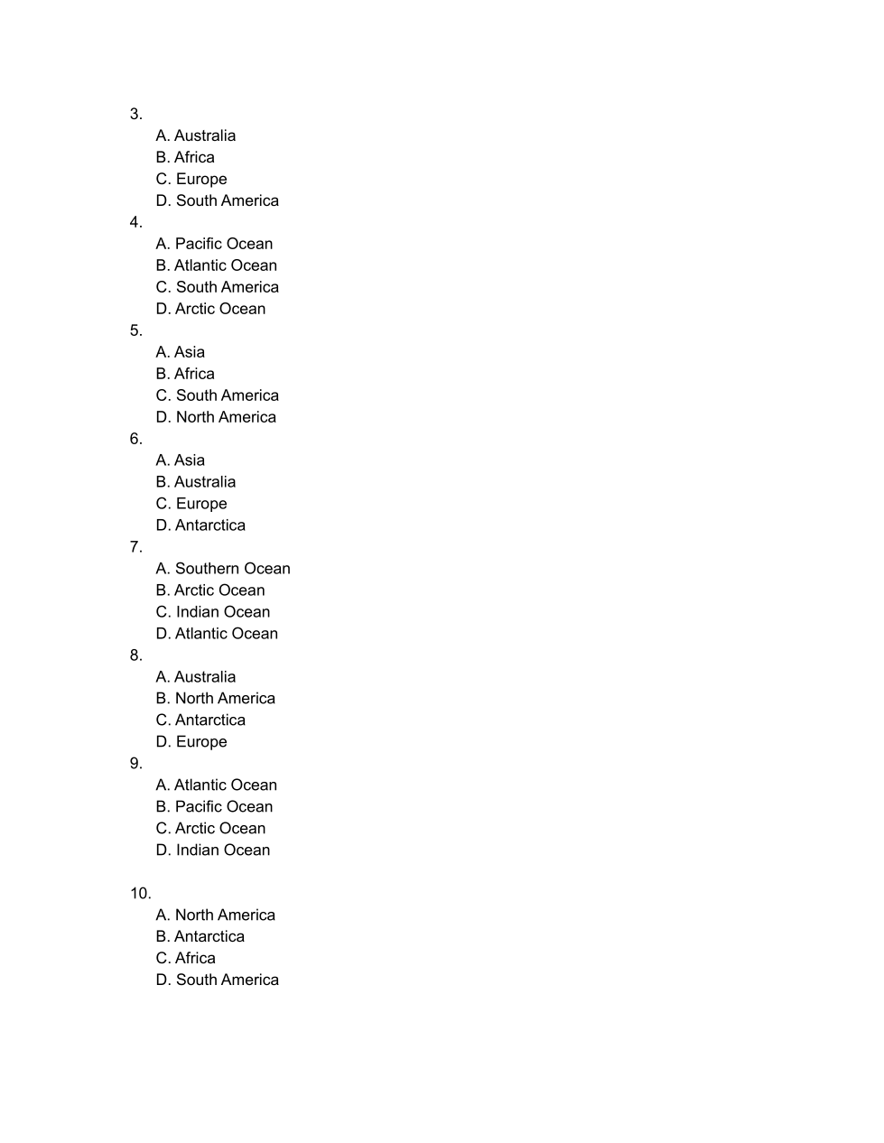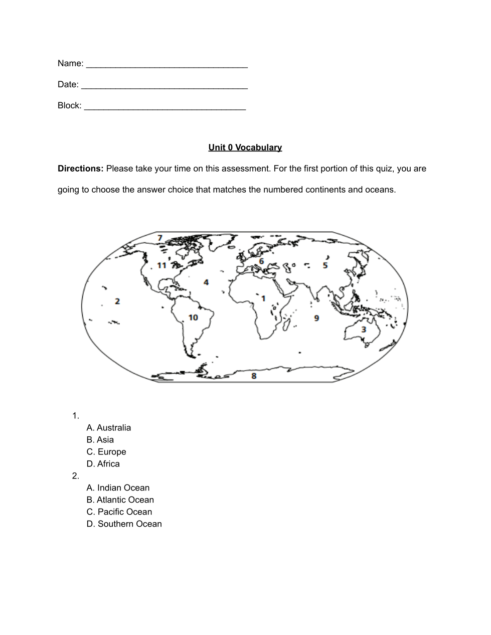 Unit 0 Quiz: Continents, Oceans, & Basic Geography