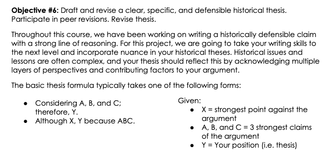 Exit Ticket for Fri, 5/27: Draft your Thesis here. It does not have to be perfect, just complete so you can get peer feedback.