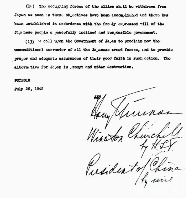 When was the Potsdam ultimatum given to Japan? When was the first atomic bomb dropped on Japan? Use the internet if you are unsure.
