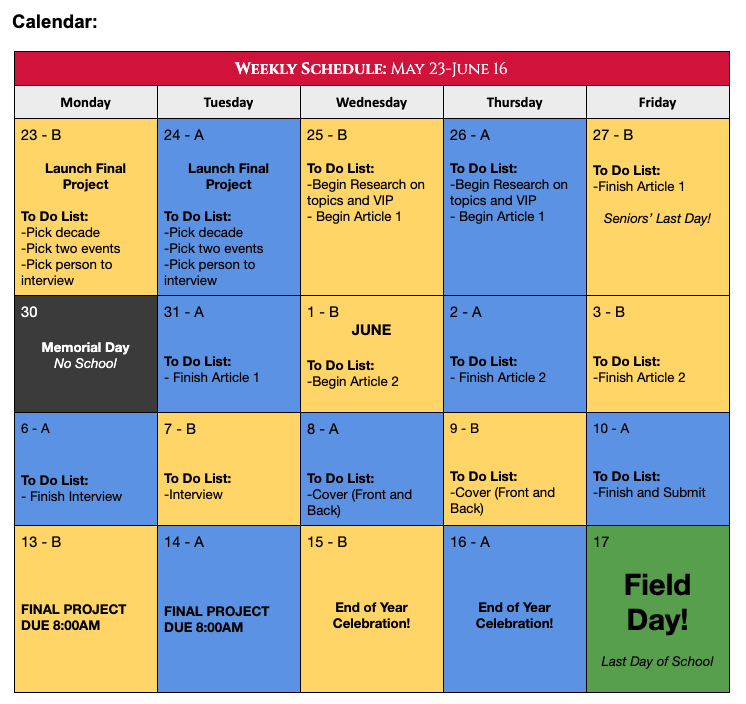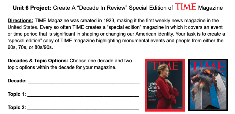Warm Up: Why do you think we are doing a final project for our last unit in U.S. History?