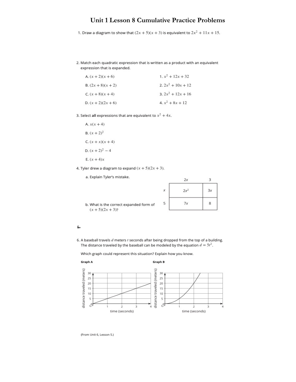Match each quadratic expression that is written as a product with an equivalent expression that is expanded.