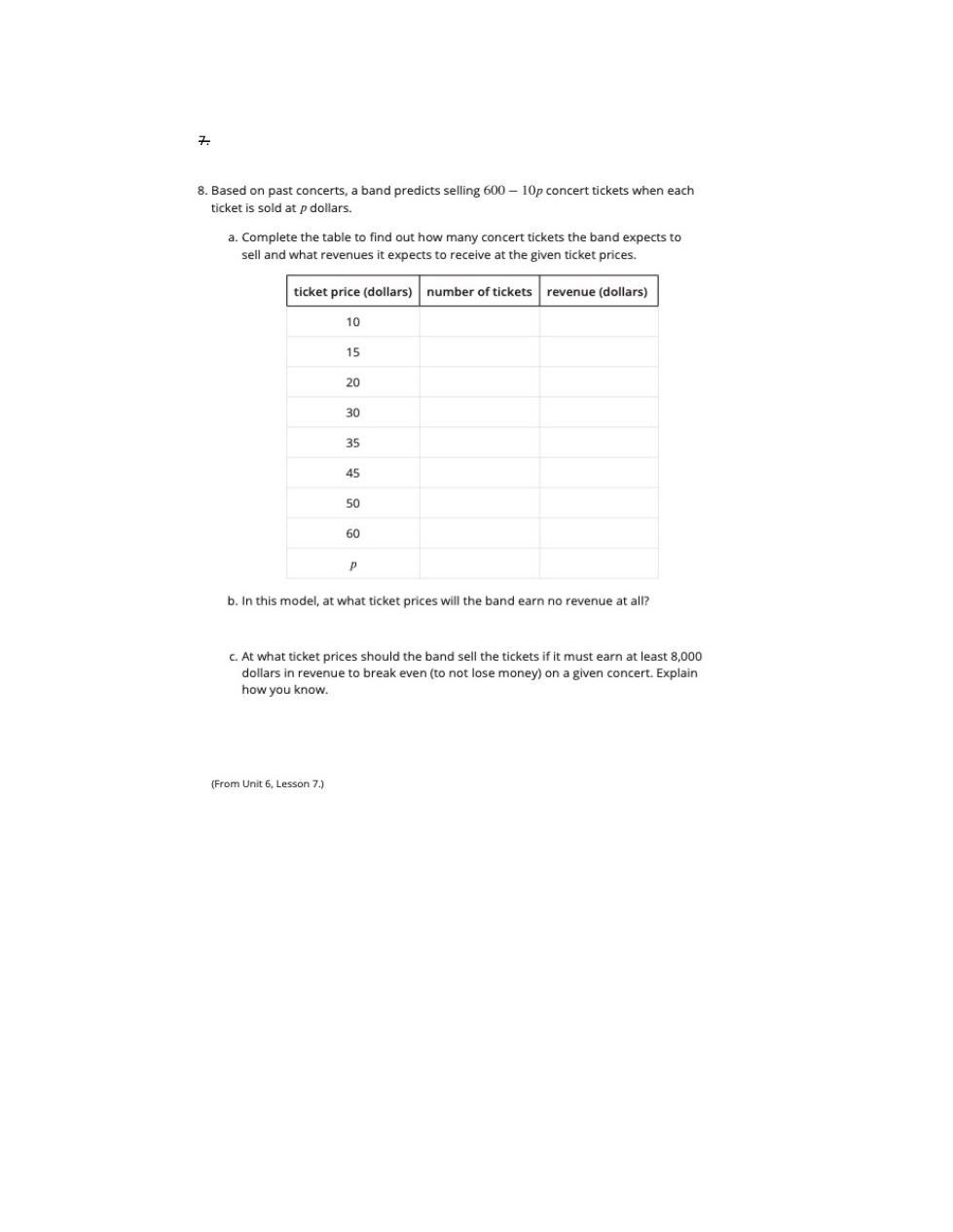 At what prices should the band sell the tickets if it must earn at laste $8,000 dollars in revenue? (Select all that apply.)