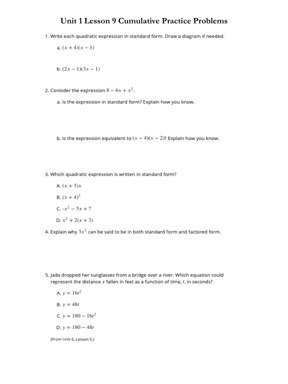 Jada dropped her sunglasses from a bridge over a river. Which equation could represent the distance y fallen in feet as a function of time, t, in seconds?