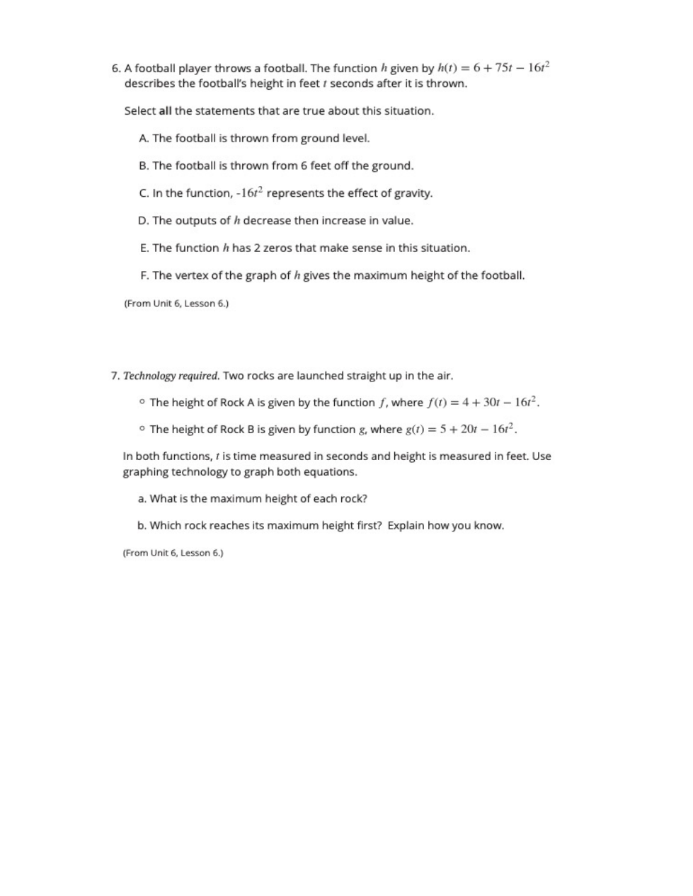 What is the maximum height of Rock A? (Round to the nearest tenth.)