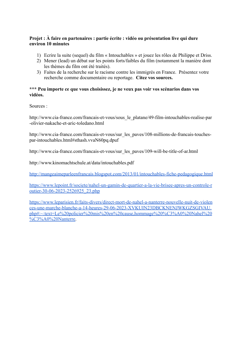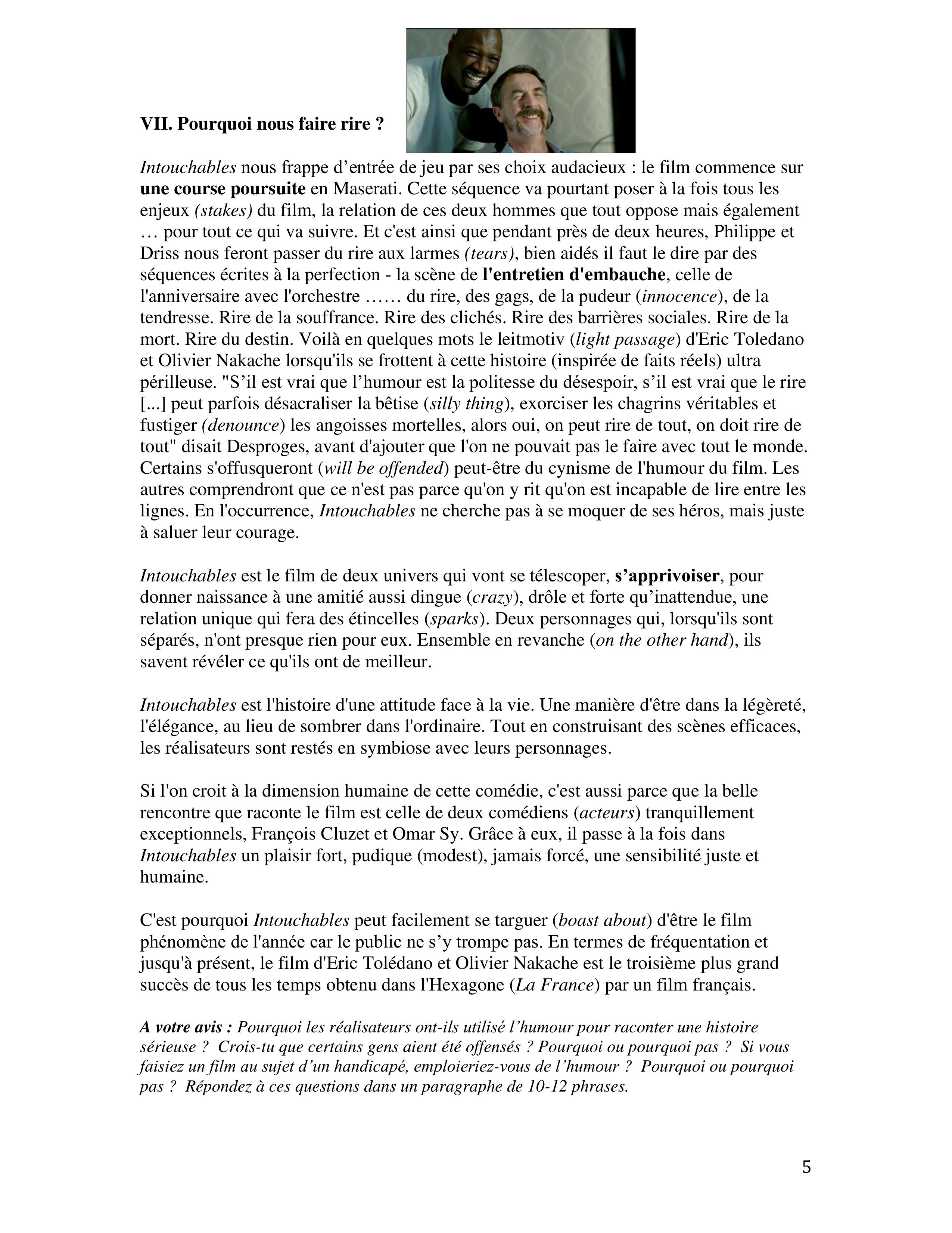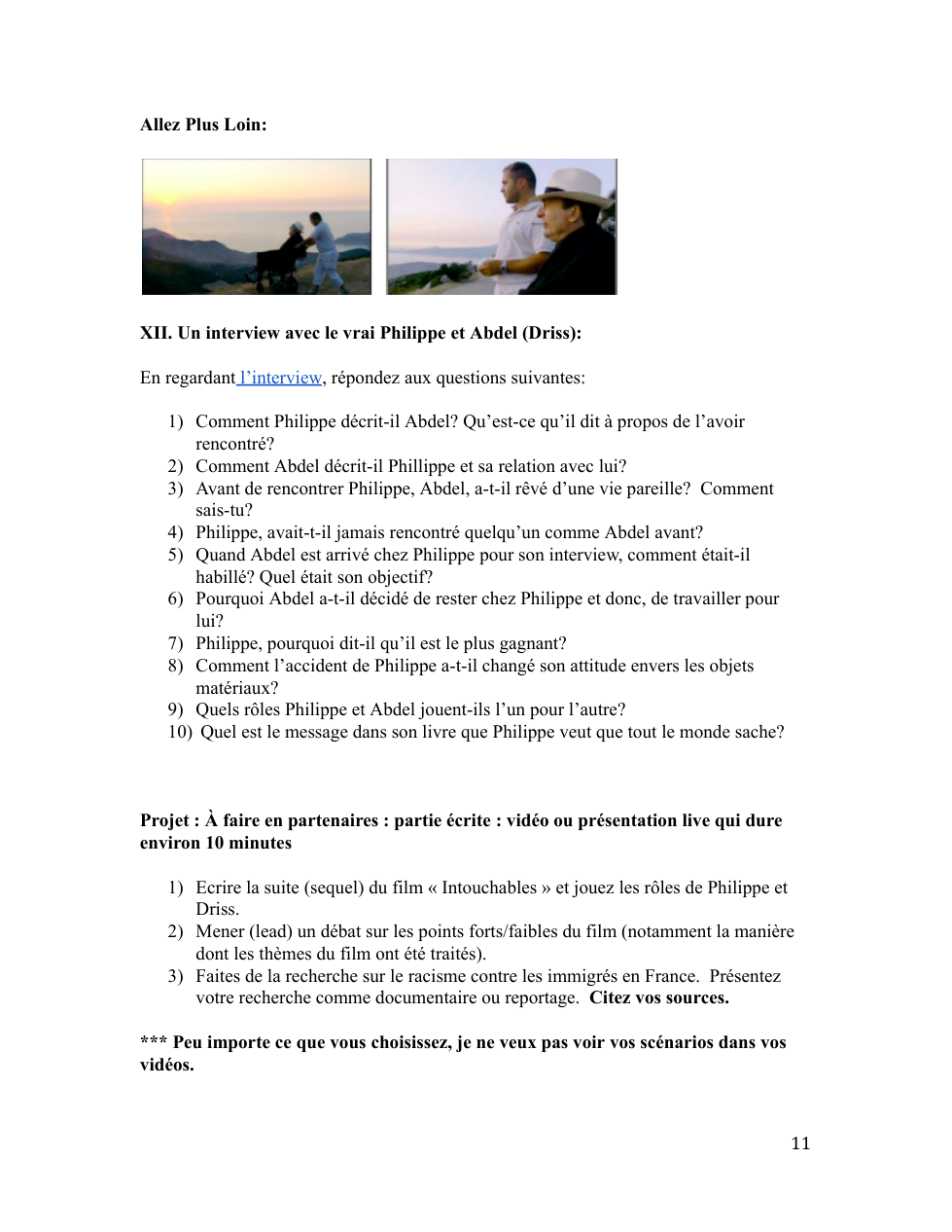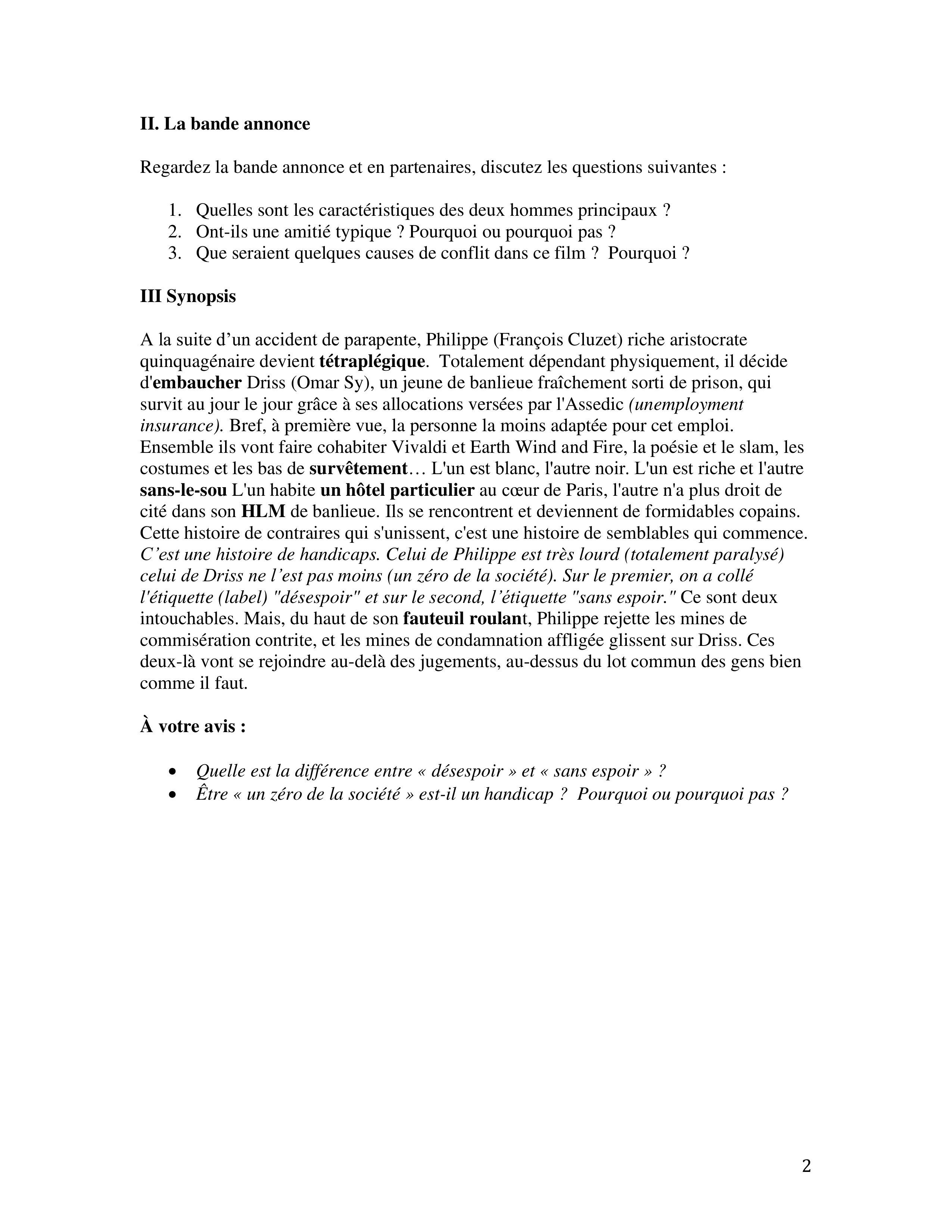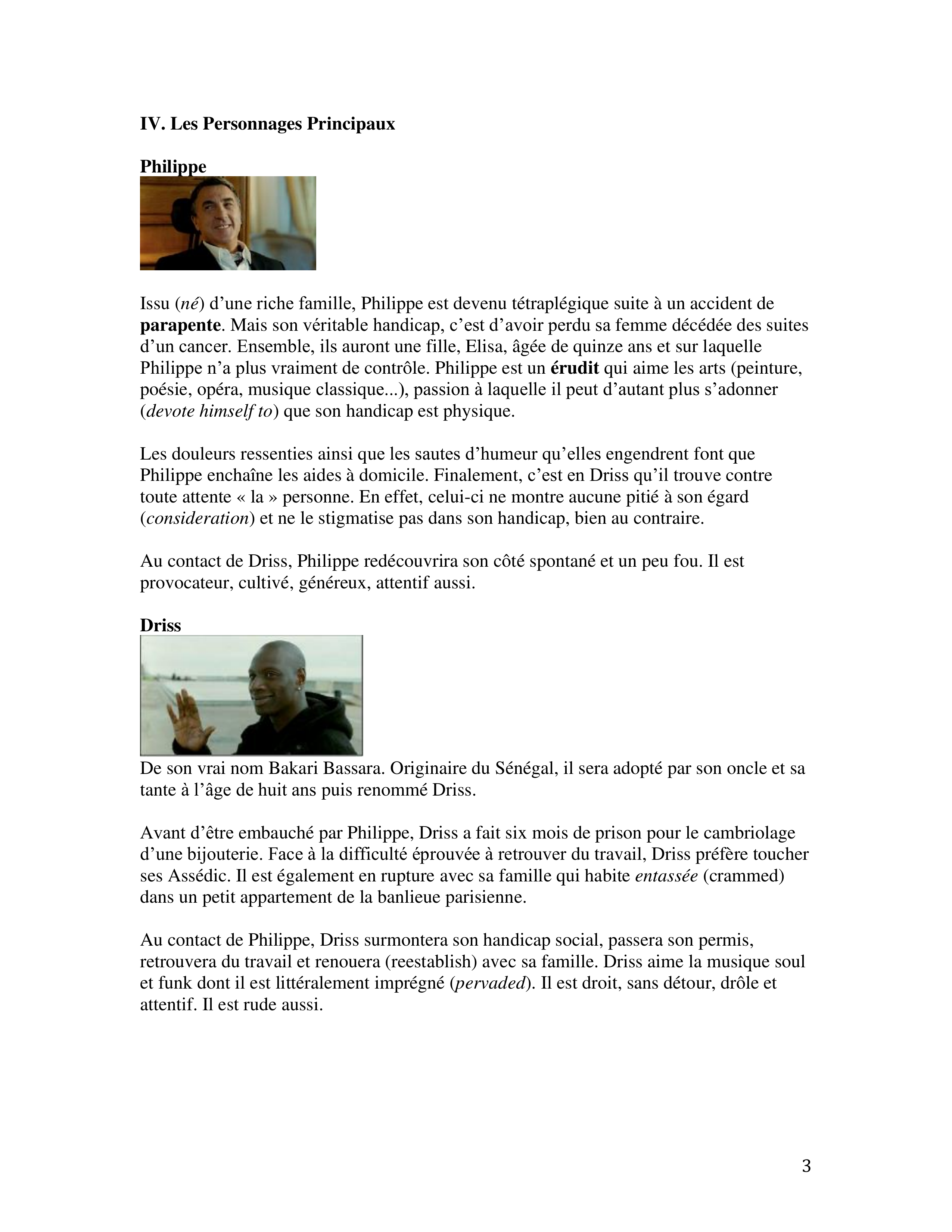 5. A la Vie à la Mort: Montrez quelques clips que vous pouvez trouver sur Youtube du documentaire et donc, de la vraie histoire qui a inspiré le film, Les Intouchables. Comparez-les et contrastez-les avec le film. Citez vos sources.