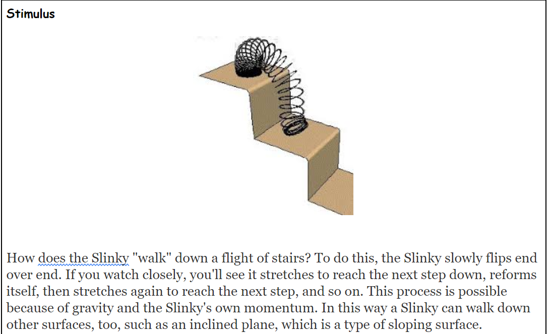 Bob, Susie, and Jill perform a scientific investigation in which they use a slinky and a ramp as a model to demonstrate that the slinky has energy. They are to determine the types of energies the slinky has and why. Susie makes a claim that the slinky can only have kinetic energy in it because it is in motion as it is going down the ramp. Did Susie make a correct claim? Provide evidence to support your answer.