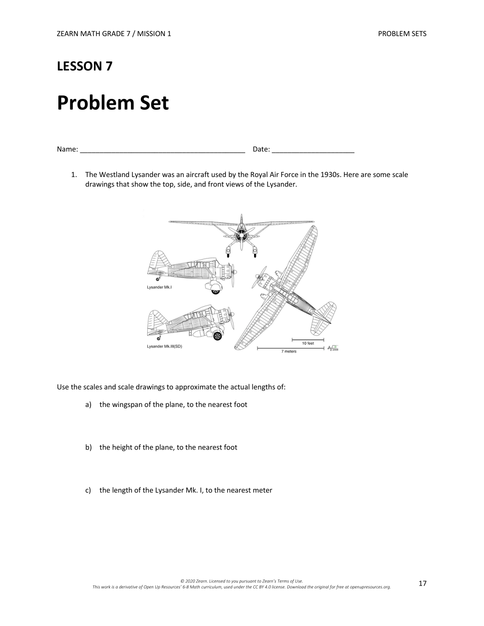 c) the length of the Lysander Mk. I, to the nearest meter