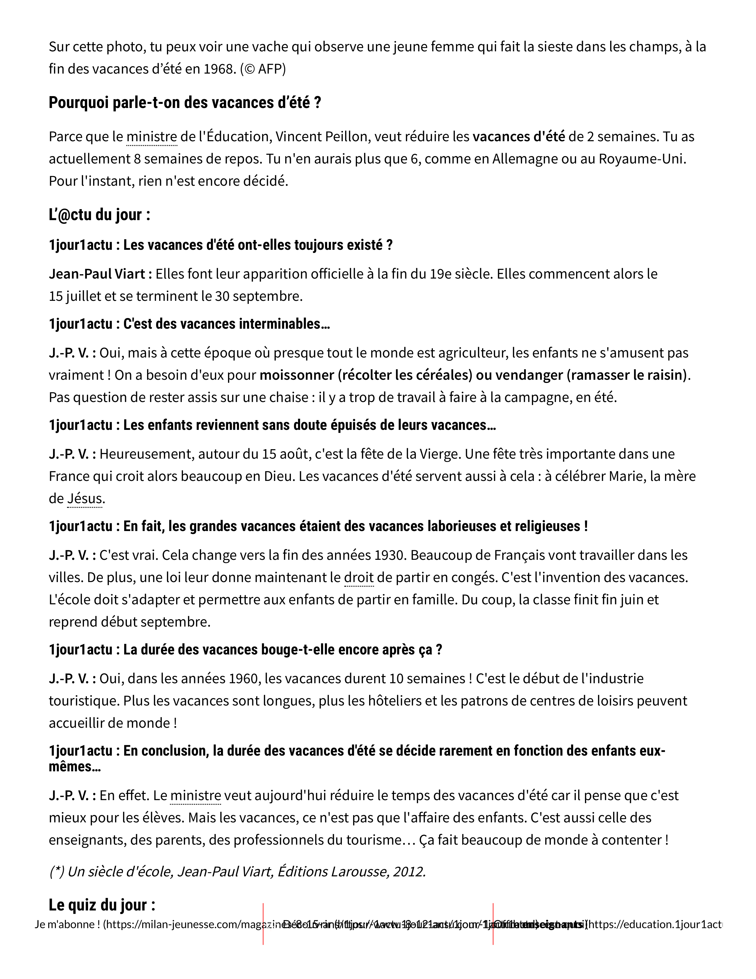 Lecture - les vacances d'été