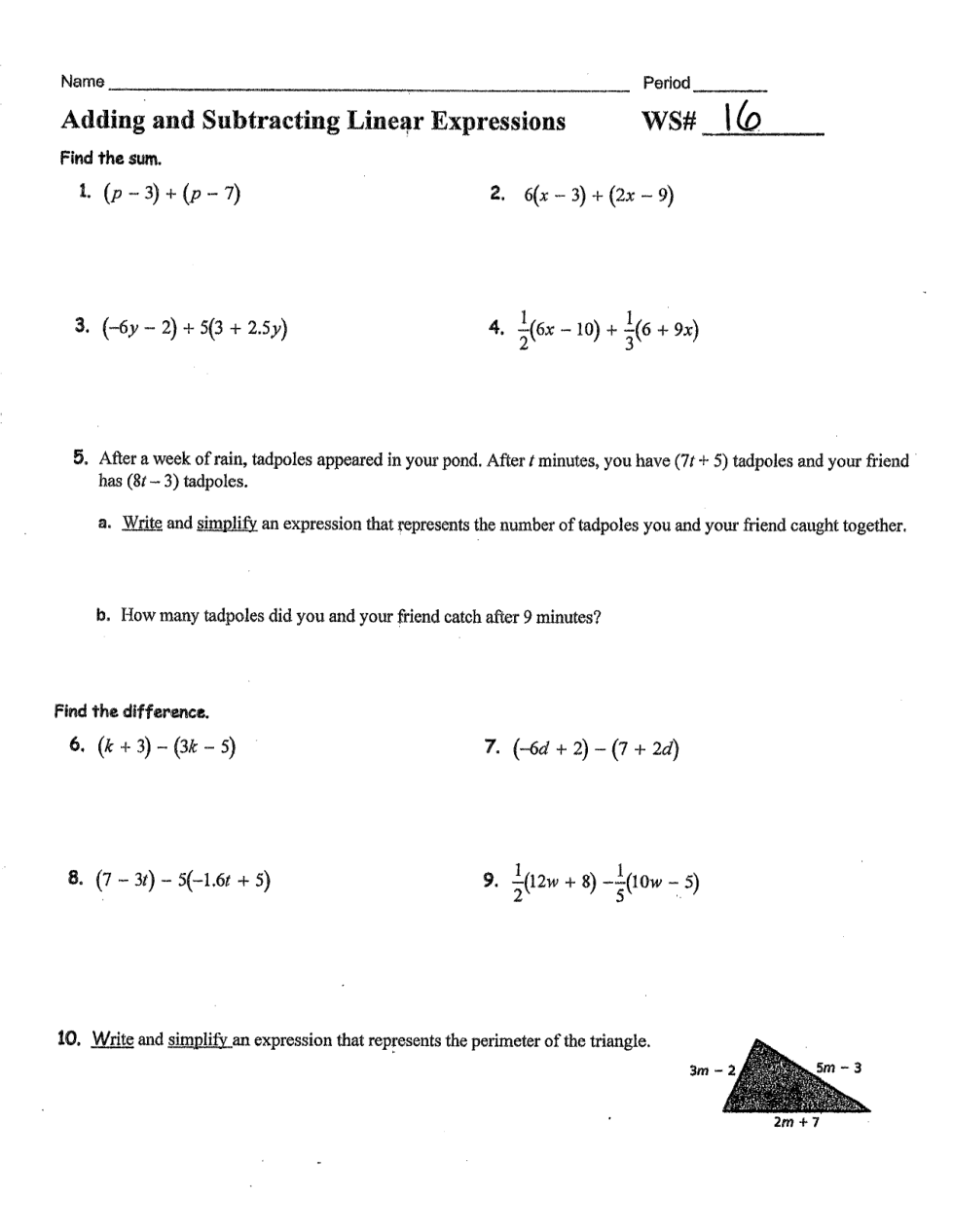 7LRIS Honors WS #16 - Adding & Subtracting Linear Expressions