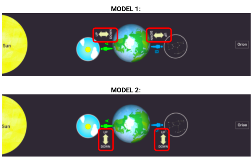 Which model correctly shows up/down for their people on Earth - Model 1 or Model 2?
