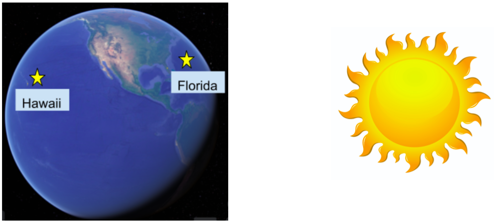 If you’re standing in Florida, and you see the sun up above you, what would a person in Hawaii see up above them?