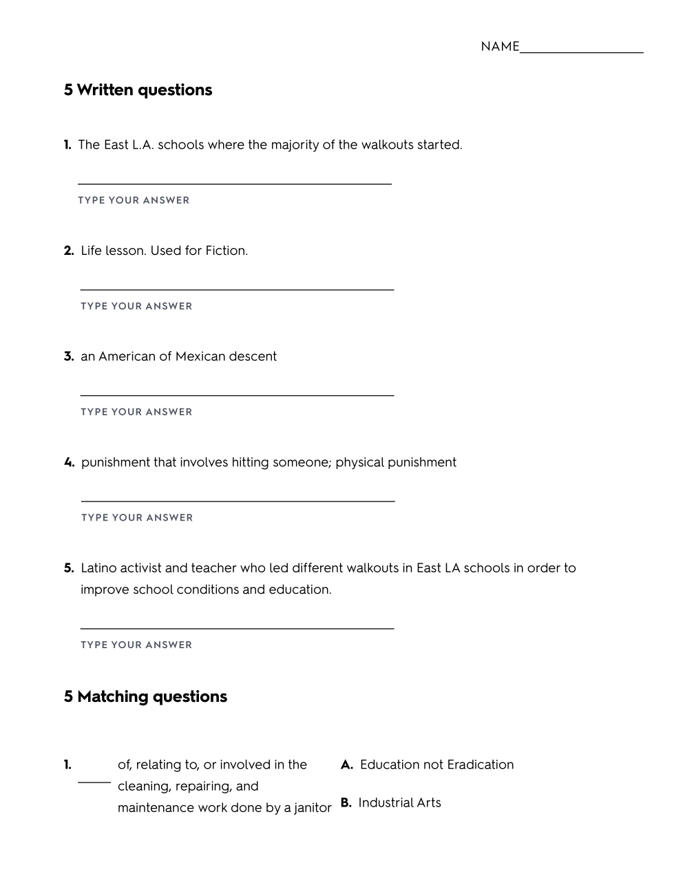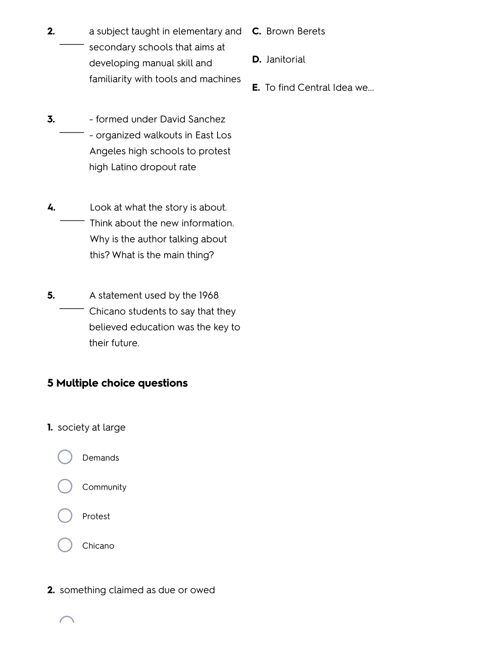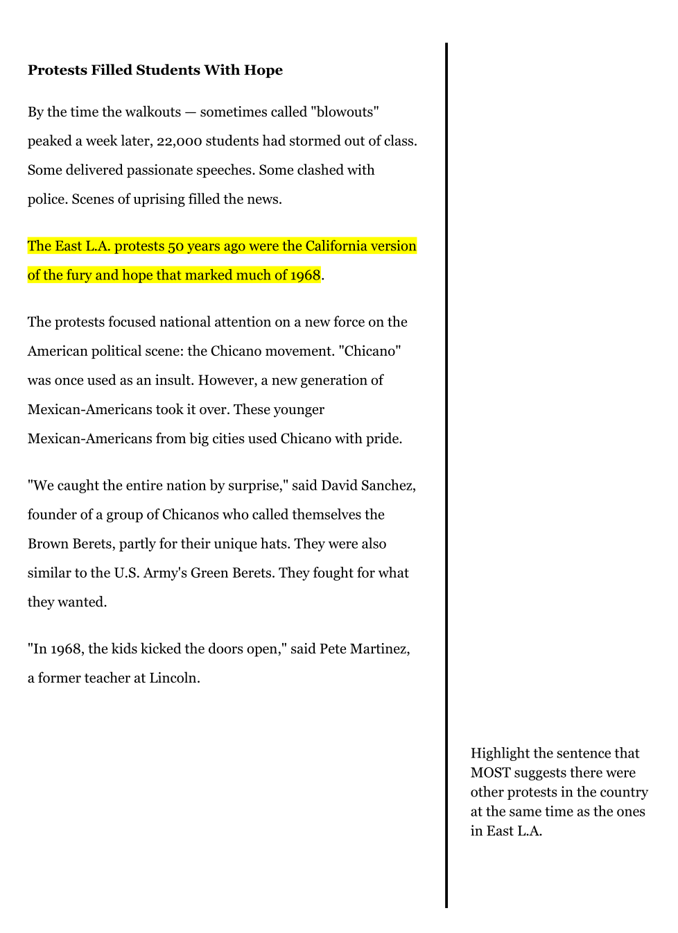 1968 Blowouts/Central Idea Summative Test