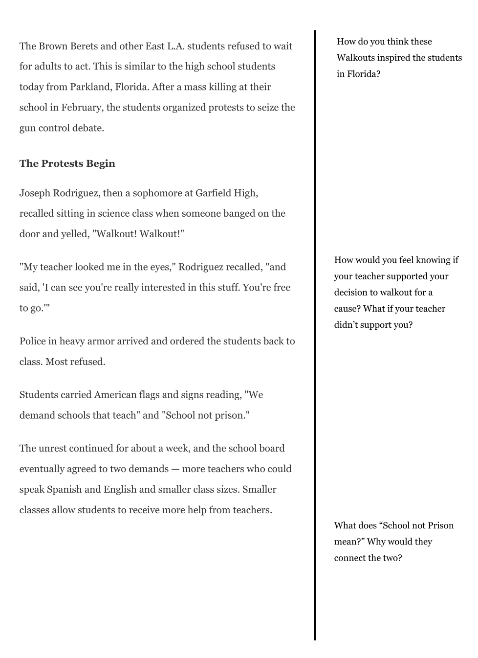 I believe the central idea of "East L.A. Blowouts: Walking out for Justice in the Classrooms" is _________.