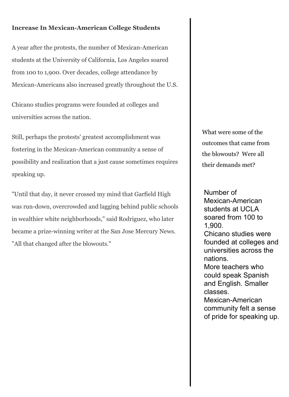 In your opinion, how does learning about the 1968 Blowouts make someone's life better? (3-5 Sentences)