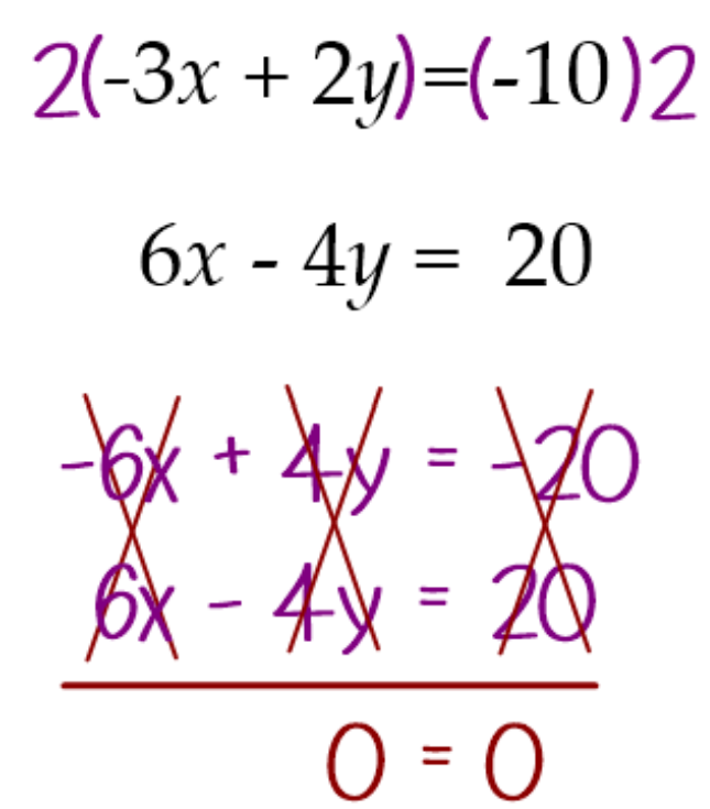 If you solve a system and BOTH variables cancel out, it's either no solution or infinite solutions.
