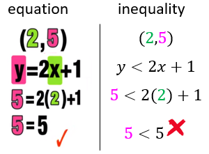 Notice in the example below, when = changes to < the point on the line is no longer a solution.