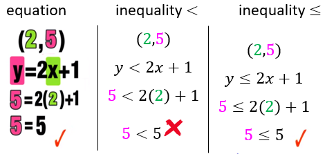 Notice in the example below, when = changes to \leq the point on the line is still a solution!