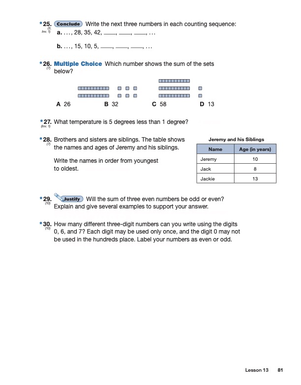 25. List the three missing digits for a. and b. You don't need to add the rule!