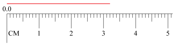 This drawing shows part of a centimeter ruler. The drawing has been enlarged. The small marks indicate millimeters. The large marks indicate centimeters.
