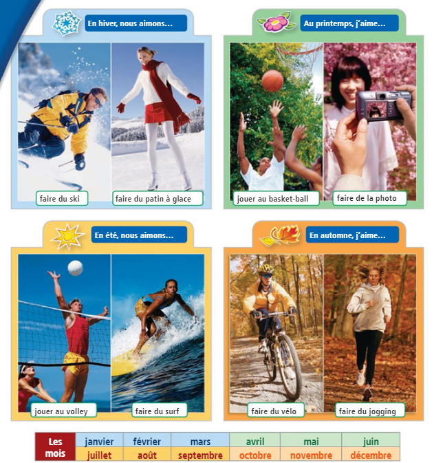 En hiver, je________ du ski et je joue du piano