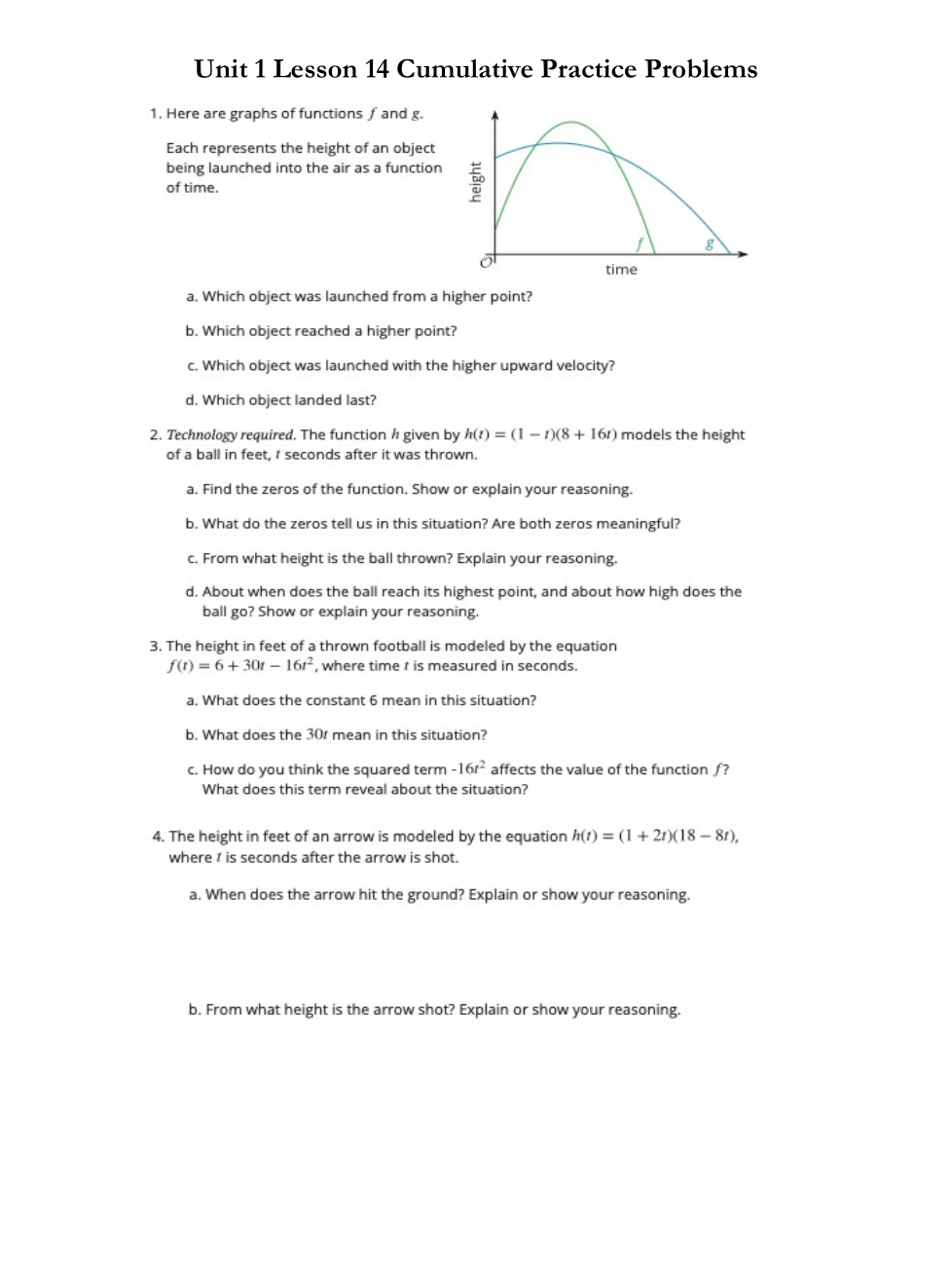 Which TWO values in the equations should you compare to determine which object was launched with a greater upward velocity?