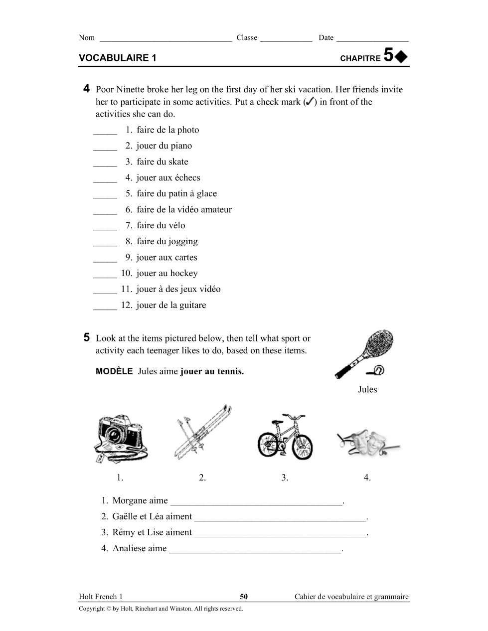 Write 5 activities IN FRENCH that you can do in NORMANDY based on the video (a list is fine) Use the vocab list from page 179 if you need help