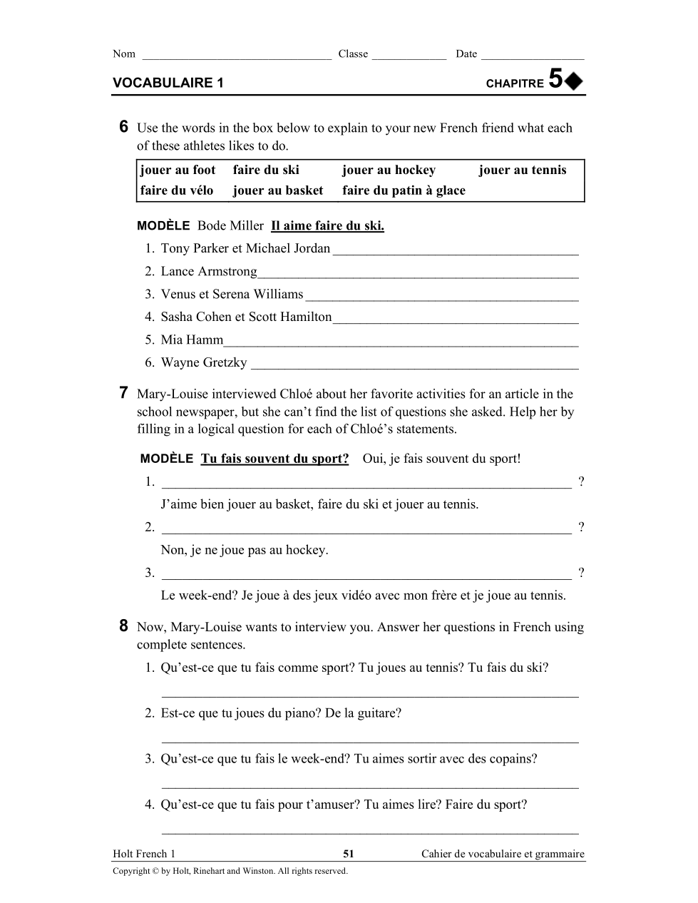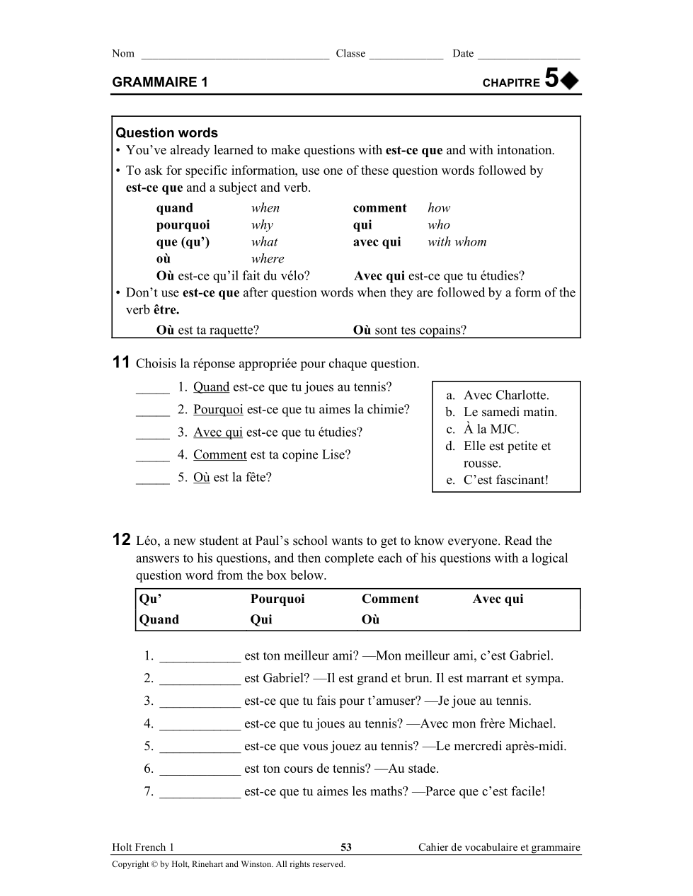 Read p. 144-147 and write 5 questions in French using the questons words (above) about the Ouest de la France
