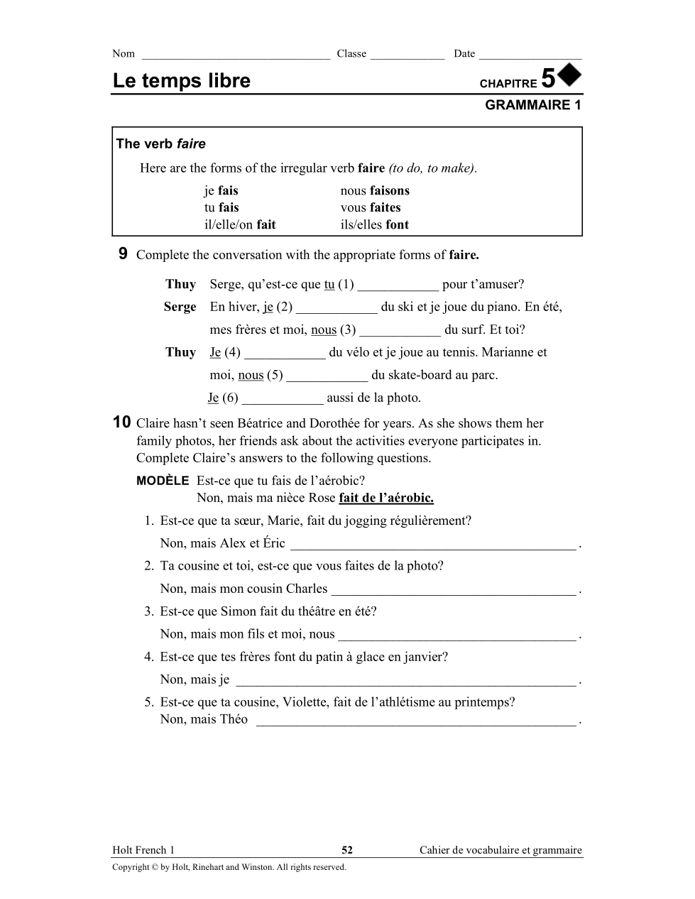 il/elle | arrow_right_alt | faites |