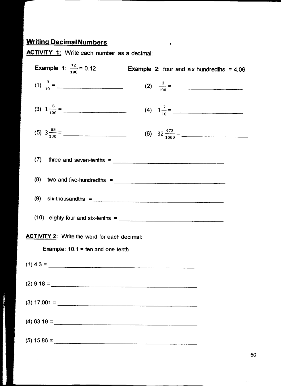 For #1-10 write each number as a decimal and # 11-15 write the word for each decimal