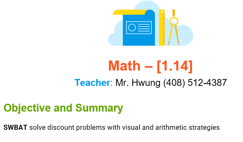 1) Working on more challenging percent problems on IXL (Search code: SPN)